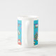 Custom Cute Owls Bone China Mug, Turquoise Blue Mug
