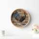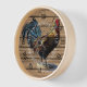 Custom Cute Rooster On Weathered Plank Pattern Clock