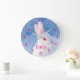 Custom cute white rabbit on blue snow background large clock