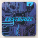 Custom Cyber Blue PCB Circuit Board Tech Art Beverage Coaster