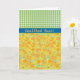 A pretty Get Well Greeting Card to personalize, with a pattern of golden daffodils, from a handpainted watercolour design by Judy Adamson, teamed with a coordinating green check gingham pattern.