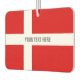 Custom Danish flag car air freshener. Coutry pride. Flag of Denmark with custom text for name, funny quote or monogram. Patriotic design to refresh your auto with different cool scents to mask dog / pet smell and other dirty stinky odours. Unique gift idea for men and women. Create your own for dad, mom, mother, father, uncle, grandpa, brother, son, sister, wife etc. Custom air refreshener with customizable template. Make it smell like a fresh new car or the sea. Double sided design. Make your own slogan or saying.