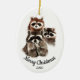 Custom Dated Christmas Raccoon Family Fun Ceramic Ornament