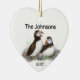 Custom Dated Christmas Together Puffins Bird Ceramic Ornament