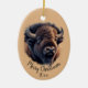 Custom Dated Christmas Watercolor Bison Buffalo Ceramic Ornament