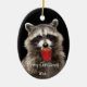 Wish someone a Merry Christmas with this custom dated Fun Raccoon Drinking Coffee Animal Wildlife