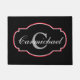 A custom design for your doorway, this welcome mat features both a monogram and last name surrounded by a decorative frame in black with red accent. Insert your name and initial in place of the sample text shown in the design template. To change the font, select the "customize it" button.