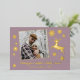 Custom Deer & Snowflakes On Mauve Pink Gold Foil Holiday Card