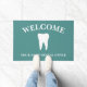 Custom dental practice door mat with white tooth logo. Make your own personalized indoor or outdoor doormat sign with custom background color and text. Add your own welcome message, business name, surname, initial letters or funny quote. Classy gift idea for new office, relocation, store, shop, professional company office, business etc. Personalizable template with elegant typography. Create your own classy entry mat / rug for front door / entryway or hall. Customizable home decor / decorations for your dental clinic. Cute dentistry gift idea for dentist, assistant or dental hygienist.
