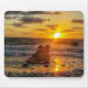 Custom designed non slip mousepad. Mousepad features a sunrise beach scene, with waves crashing over a jetty. The colors of of the sunrise is reflecting on the waves as they reach the surf.