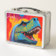Roar into lunchtime. This custom metal lunch box features a T-Rex and personalized name. Perfect dinosaur lunch box for kids, dino lovers, or retro gift. Durable, insulated.
