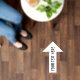 Directional arrow with your text in simple typography. Change the colors of the arrow and text to match your branded colors by editing in the design tool.