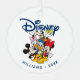 Add extra holiday magic to your tree with this Disney family ornament featuring beloved characters Mickey Mouse, Minnie Mouse, Donald Duck, Daisy Duck, Goofy, and Pluto gathered together in a cheerful design. The classic Disney logo tops the artwork, making it a festive centerpiece on your Christmas tree. Personalize the front with your family’s names and the back with your last name and year to create a treasured keepsake you’ll enjoy for years to come. Perfect for families who love Disney and want to celebrate the season with their favorite characters.