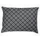 Custom dog bed is shown with a multi color black and grey abstract print.