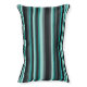 Custom dog bed is shown with a multi color black and teal stripes print.