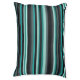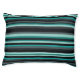 Custom dog bed is shown with a multi color black and teal stripes print.