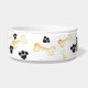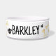 Custom personalized dog food and water bowl with pet name and bones paws design.