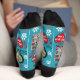 I love these Mona Lisa Christmas Socks! They are soft and very comfortable. The print looks great, on all sides including the most stretched area around my calf.