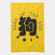 Customizable Black ideogram of dog on yellow kitchen towel. Perfect for Chinese New Year of the Dog 2018 or Birthday (people born in Dog Year = you can easily change year and color of the ideogram by clicking the customize button). ----- "The Dog (狗) is one of the 12-year cycle of animals which appear in the Chinese zodiac related to the Chinese calendar. The Year of the Dog is associated with the Earthly Branch symbol 戌. The character 狗 refers to the actual animal while 戌 refers to the zodiac animal. (...) People born within these date ranges can be said to have been born in the "Year of the Dog", while also bearing the following elemental sign:
