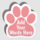 A blush pink paw print car magnet with a white border and white text. Customize this with your own text to create a personalized dog paw car magnet that is uniquely yours. You can add your dog's name or the name of your pet business. Add your text to say what you want on this cute magnet.