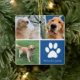 Custom Dog Photo Collage Cute Blue Pet Christmas Ceramic Ornament