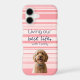 Carry your furry friend everywhere with this stylish custom dog photo iPhone case featuring chic muted pastel pink stripes.