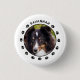 Destei's personalizable pet photo template design featuring some dog paw prints on the edges and a personalizable text area on the top. The photo is placed in the middle in a round shape together with a thin black border. You can change the color of the paw prints and the text to any other color, if you wish.