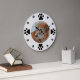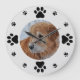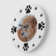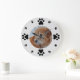 A dog lover clock featuring your favorite photo of your dog, with paw prints marking the quarter hours. Makes a great dog lover gift.