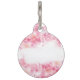 Keep your furry friend stylish and safe with this customizable large round dog tag featuring delicate pink watercolor floral artwork. Perfect for dogs or cats, the tag has a clean white space in the center for your pet’s name, and an optional field for your contact info.