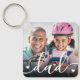 Create a custom keepsake with this personalized family or kids photo keychain, now featuring a sweet new design on the front. The layout includes space for one favorite photo with the word "dad" written across the bottom in a flowing script font, accented by a few small heart details. You can also change the text to say "mom," making it a great gift for any parent. A subtle black gradient sits behind the text to help it stand out without overpowering the image.