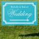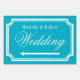 Elegant personalized turquoise blue and white wedding yard sign pointing left or right. Turn arrows to your preference. Help guests find their way to your reception party, car park etc. Classy double sided design with stylish chic border and name of bride and groom. Fancy script typography. Customize for left and right direction. Personalizable directional road signage board. Also handy for parking lot, photo booth or cocktail bar in different locations. Available in small medium and large. Aqua and white or customizable background color.
