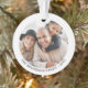 This ornament switches to a round layout with two round photos—one on each side—so you can highlight two favorite moments. The name curves along the bottom on both sides for a clean, personalized touch. The simple black background keeps the whole design modern and timeless. Easy to customize and a sweet gift for family, friends, or yourself, it adds a meaningful little moment to the tree.