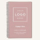 Add a professional look to your workspace with a custom company branded spiral notebook featuring a large space for your business logo with modern custom text that can be personalized with the name of the employee or business owner, business name, location, slogan, website, or other info. Makes a great corporate gift. Note, the light dusty rose pink background and white color scheme can be modified.