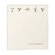 This notepad is a great gift for a hummingbird lover. It features different species of North American hummingbirds such as Ruby-throated, Rufous, and a Black-chinned hummingbird. The font style, font size and color can be changed by clicking on "customize further." All bird images are taken from original watercolor paintings by Christiane Dobbins.