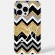 Contemporary white, black, and faux shiny gold glitter chevron zig zag stripes pattern. With room to customize or personalize with a monogram or initial of your choice. Beautiful, modern, and cool cover for the trend-savvy and art-loving hip trendsetter, artsy motif lover who wants to protect their phone from dust and dirt, wear and tear. This design is available in Apple iPhone 6, 7, 8, 10 or X, XR, XS, 11, 12, 13 Mini, 14, 15 Plus, and Pro Max cellphone cases. Show off your style, look fashionable trendy, and feel stylish with a unique design on a mobile device accessory of your choice.
