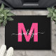 Custom Elegant Black Hot Pink Monogram Script Name Doormat