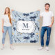 Custom Elegant Blue Bow Floral Monogram Fleece Blanket