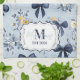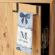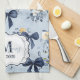 Custom Elegant Blue Bow Floral Monogram Kitchen Towel