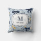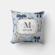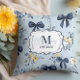 Custom Elegant Blue Bow Floral Monogram Throw Pillow