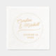 Immortalize every tender sentiment with our exclusive, chic bride and groom name gold foil napkins. These napkins are the quintessential accent for your table setting on your momentous occasion, adorned with graceful gold foil details, and personalized with your names and the date of your special event. Made from superior quality materials, in an elegant silver, yellow, or rose gold font, against a stylish white. Perfect for weddings, anniversaries, or any heartfelt celebration, they bring an element of elegance and allure. Cherish your moments in grandeur — place your order today!