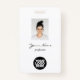 Easily personalize this Custom Employee Name Badge with Photo, Scan Bar Code and business logo. An elegant and simple business design in black and white colors fully customizable in front and back sizes, stylish calligraphy script font and classic Garamond serif font for a professional and sophisticated look. Avaiable with lanyard, metal clip or with retractable. No minimum order.