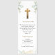 Elegant bookmark favor designed specifically for meaningful religious occasions such as baptisms, first communions, confirmations, and more. Each bookmark features a timeless cross motif in faux gold foil, soft watercolor eucalyptus greenery, and subtle stain textures for a serene, gender-neutral look—perfect for both boys and girls. With fully customizable text, this versatile design easily adapts to a variety of spiritual gatherings, including religious retreats, dedications, or church ceremonies. Part of a wide collection with several religious matching items as well as event decor products.
