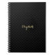Custom, personalized, modern, classy black and grey checkered pattern, elegant faux gold typography / script name, spiral notebook. Simply type in your name, to customize. Great for home, office, business, school, college, university. Makes a great custom, personalized gift for birthday, back to school, wedding planning, graduation, new years, holidays, christmas, and more.
