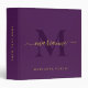 Custom Elegant Initial Monogram Purple & Gold Text 3 Ring Binder