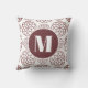 Chic custom elegant maroon circular pattern monogrammed pattern throw pillow. Customized with your monogram initial in white. Very stylish!