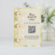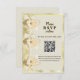 Custom elegant modern Enclosure Card created for online RSVP with web site and QR code designed with elegant narcissus flower with golden frame. The black text with a beige shadow on a beige background. This design combines elegant and modern style, as the card has a QR code add a completely new way of communication. The text and QR code can be modified according to your needs.