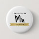This beautiful hand-lettered custom the future Mrs. button is perfect for a bride-to-be to sport for her bridal shower or bachelorette party. The design features "Mrs." in a beautiful black hand-lettered font and a faux gold foil ribbon underneath the last name. Personalize the design by replacing the sample last name.Other matching and coordinating products like bridal shower invites, wine bottle labels, napkins, etc. are also available in our store.