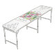 Not that I've had experience to buy that many beer pong or ping pong tables in my life, but I know a good quality product when I see it! This beer pong table is sturdy and solid and still lightweight enough to be portable. It folds and unfolds smoothly for easy storage or setup. From order to arrival here, the time was half of what was estimated, and that was during the holiday season. And -- most importantly -- the recipient LOVED it! I would definitely purchase this product again or other products by the maker Hampton Technologies , should an occasion to do so arise. The printing is beautiful! The blues and reds are deep and rich and the white "chalk look" is clean and crisp,. The photo (taken in low light) doesn't really do it justice. We know it's printed, but take a step back, and it really does look like chalk on a blackboard. To get the blue background like we did (instead of the traditional green chalkboard background), use background color #26306A. :)