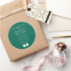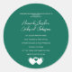 Customize these classic round stickers with your desired name, date, or message. Great for weddings and other occasions. Color shown is emerald green. Use the template to create your own wedding stickers.