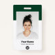 Easily personalize this Custom Employee Name Badge with Photo, Scan Qr Bar Code and business logo. A simple business design in elegant stylish dark green and white colors fully customizable in front and back sizes, sans-serif basic and modern fonts and a professional and clear look. Avaiable with lanyard, metal clip or with retractable. No minimum order.